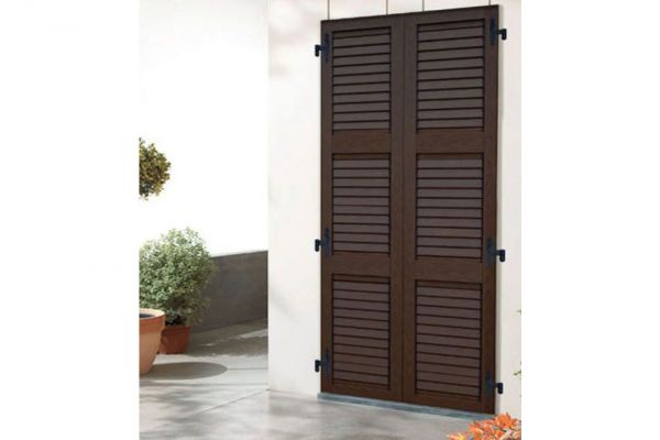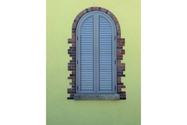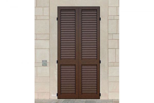 Sistema battente con anta a profondità mm 44 e profili in lega di alluminio. Sistema a STECCHE FISSE APERTA con ovalina da mm 50. Sistema a STECCHE ORIENTABILI con lamelle a goccia e movimentazione tramite meccanismo “Rotary a pomolo”. Anta battente nella versione piatta con guarnizione perimetrale. Sistema di chiusura con spagnoletta e ganci per fermo su perni a piastra. Persiana a muro disposta su cardini e bandelle a vista fisse o registrabili. Colori Ral – Simil Legno di Serie – Simil Legno Sublimato.